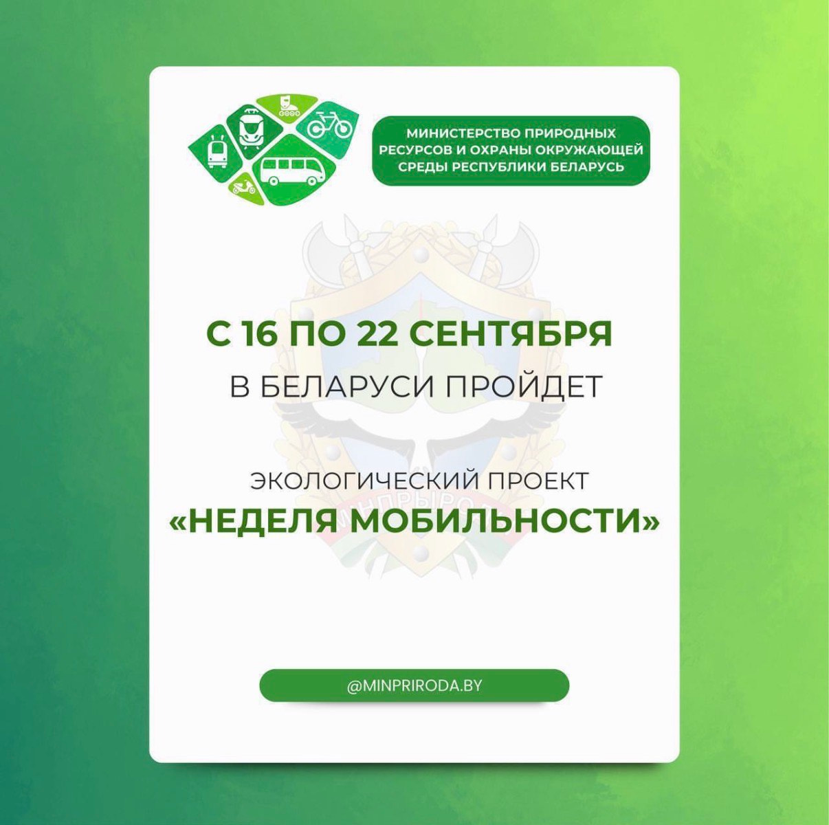 Кобринская инспекция природных ресурсов и охраны окружающей среды приглашаем всех желающих принять участие в мероприятиях, запланированных в рамках Дня без автомобиля!