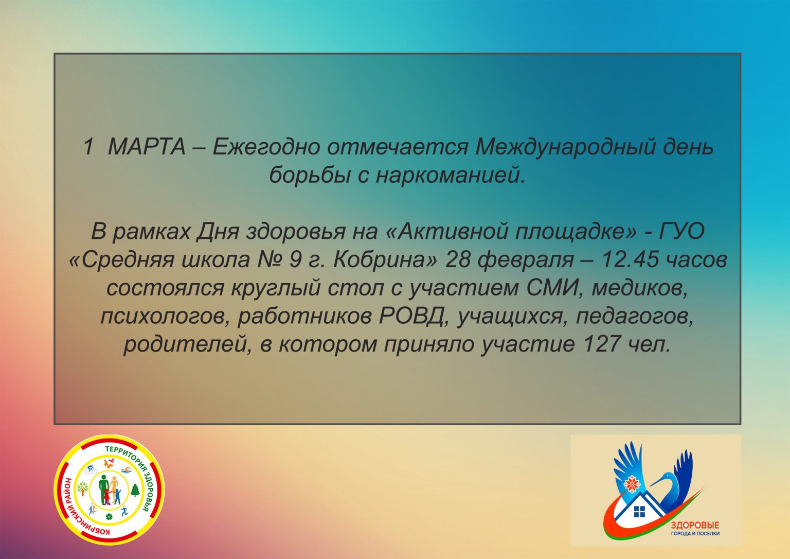 Круглый стол приуроченый к 1 марта Международному дню борьбы с наркоманией