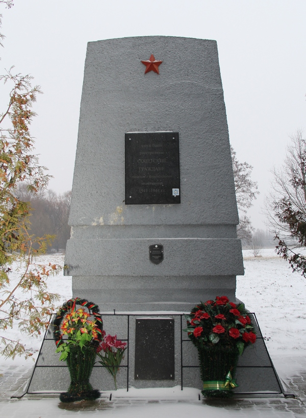 Раннее январское утро. На только что выпавшем снегу - пара свежих следов. Значит, сегодня здесь уже кто-то был, замечаю себе я, идя по аллейке к памятнику жертвам геноцида еврейского народа, который установлен в северной окраине Кобрина по улице Первомайской, приходил, чтобы поклониться своим предкам, тем, чья жизнь была так резко оборвана. «Здесь были расстреляны советские граждане немецко-фашистскими захватчиками 1941-1944 гг», - гласит надпись сверху на памятнике. Надпись внизу: «Тут пахаваны 44 мірныя жыхары, растраляныя летам 1943 года на тэрыторыі пасёлка Фруктовы. Летам 1942 года была зверскі забіта сям’я Мазурскіх: Хаім, Рэзля, Мортка, Боба, Янкель, Шая, Іцэк, Вельвель, Грыўка, Мартша і двое невядомых. Вечная памяць ахвярам нямецка-фашысцкага генацыду”. Вечная память жертвам фашизма – повторяю вслух себе я и замечаю на гранитной плите припорошенные снегом алые гвоздики.