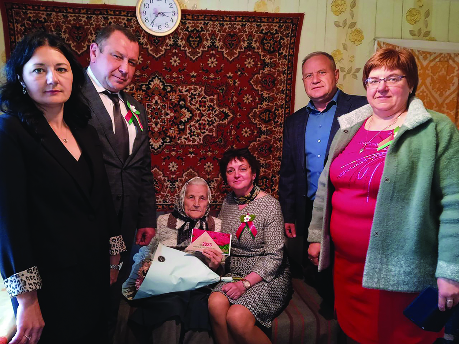 С поздравлениями и подарками к ветерану в этот день пришли представители райисполкома, Кобринской районной организации Белорусского общественного объединения ветеранов, ОАО «САЛЕО-Кобрин», а работники культуры подарили фронтовику душевный концерт на дому.