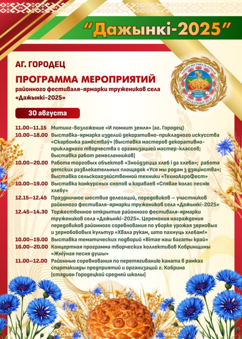 Программа районного фестиваля-ярмарки тружеников села "Дожинки 2025"