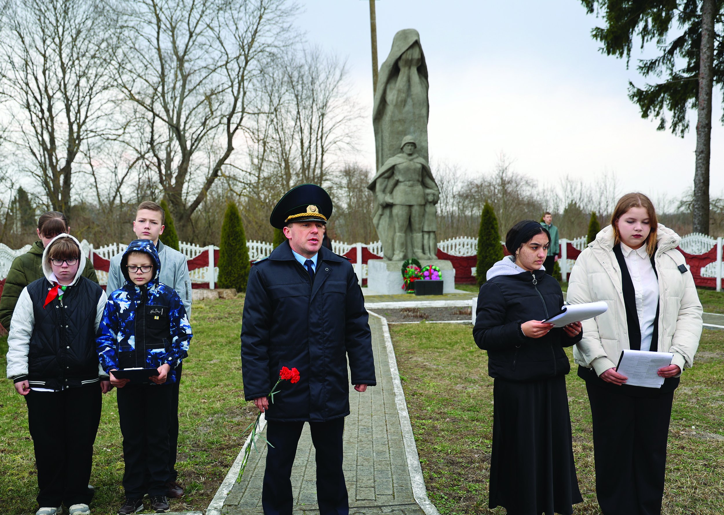 Каменка была сожжена 6 сентября 1942 года в ходе операции «Треугольник», которую каратели проводили в Брестском, Кобринском, Малоритском районах. Две колонны гитлеровцев и их пособников из 3-го батальона 15-го немецкого полицейского полка, подразделений 10-го и 16-го полков, специальной роты «Нюрнберг» окружили деревню. Выжившие вспоминали, что жителей заставили лечь на землю, их хладнокровно и методично избивали палками, тех, кто пытался убежать, настигали пули. Оставшихся избитых и раненых согнали в сарай и подожгли. В Каменке было уничтожено 174 мирных жителя. На месте трагедии установлен памятник «Скорбящая мать и солдат с ребенком», о страшном дне напоминают плиты с выбитыми на них именами жертв фашизма. Участники мероприятия возложили цветы к братской могиле и почтили память павших минутой молчания.