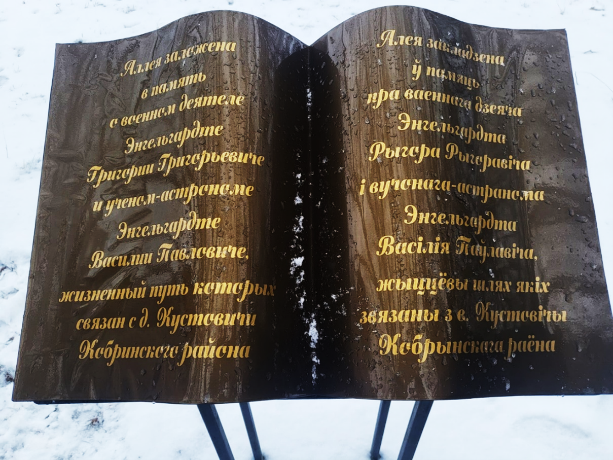 21 февраля 2025 г. в д. Кустовичи Кобринского района открыта мемориальная (информационная) табличка в память о Григории Григорьевиче Энгельгардте (1759-1833) – генерал-лейтенанте, отличившемся в войнах с Наполеоном, и его внуке – Василии Павловиче Энгельгардте (1828-1915) – русском астрономе и общественном деятеле.