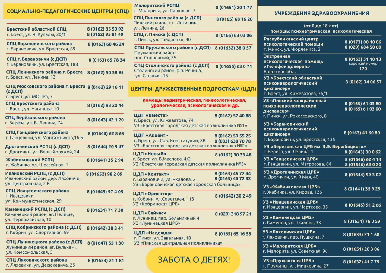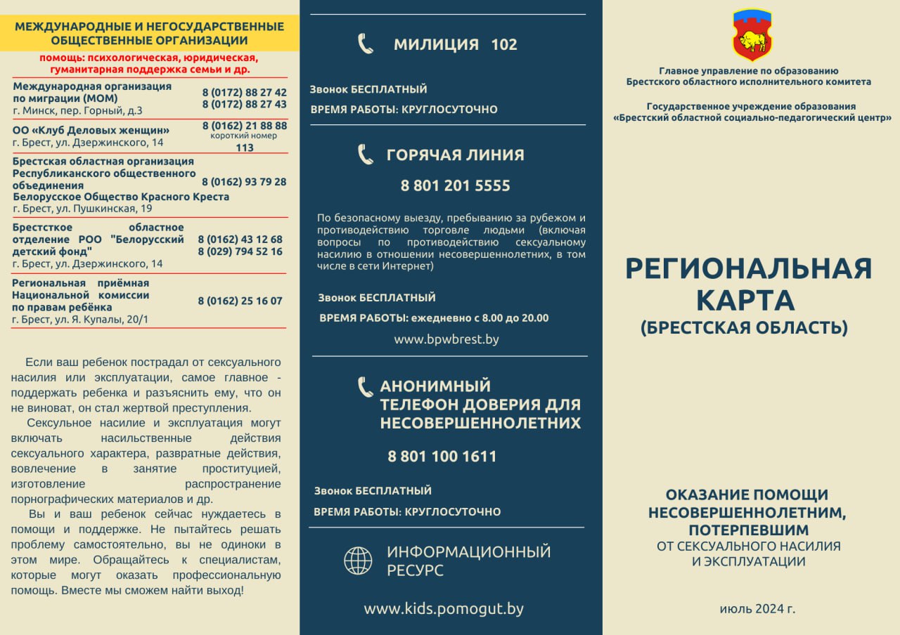 Региональная карта (Брестская область) Оказание помощи несовершеннолетним, потерпевшим от сексуального насилия и эксплуатации: